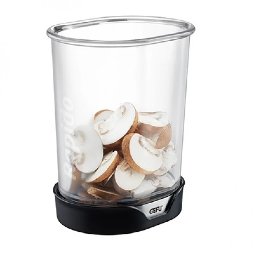 Maak het koken makkelijker met de Gefu snijder Rapido! Met deze snijder kunt u razendsnel uw groentes en fruit in schijfjes snijden. De opvangbak is transparant en neemt de gesneden plakjes meteen op. De snijder is eenvoudig te gebruiken. U plaatst de groentes of fruit op een snijplank en verwijdert de bodem van de opvangbak. Hierna drukt u de opvangbak op het fruit en als resultaat heeft u mooie schijfjes in de opvangbak. Na gebruik kan de Gefu snijder in de vaatwasmachine.