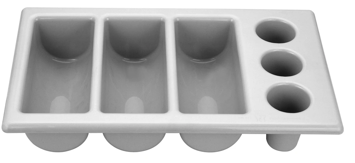 Deze bestekbak van Hendi heeft 3 ronde vakjes waarmee u uw (klein) bestek rechtop kan zetten zodat deze sneller droogt. Uiteraard kunt u uw bestek ook in één van de drie liggende vakjes bewaren. De bestekbak voldoet aan de Gastronorm waarmee deze ook geschikt is voor de horeca.