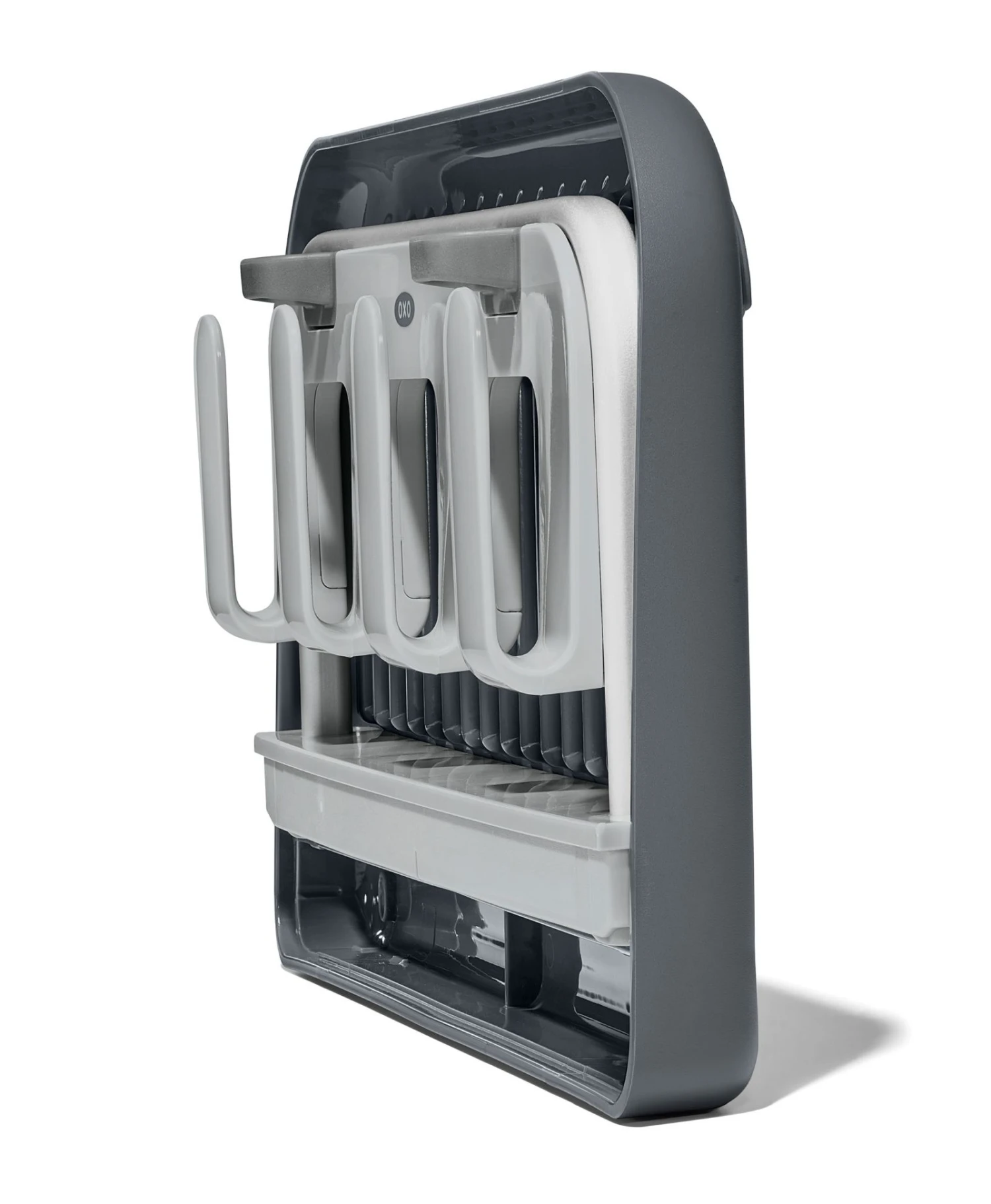 Maakt u veel gebruik van herbruikbare waterflessen, maar weet u niet hoe u ze na gebruik snel droogt? Oxo droogrek waterflessen houdt uw reisflessen schoon en droog. Het handige ontwerp biedt plaats voor vier waterflessen of bekers, vier deksels en vier rietjes, die allen efficiënt en hygiënisch kunnen drogen. De opstaande randen zorgen ervoor dat de deksel en doppen eraf rollen. Daarnaast is het rek makkelijk in te klappen en op te bergen.