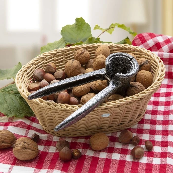 Met de notenkraker van Westmark kun je makkelijk noten kraken van verschillende maten. Door de twee handvatten en een speciale veer-systeem wordt het kraken super simpel. Daarnaast is deze notenkraker ook geschikt als champagne-ontkurker, aan de binnenkant zitten er kleine tanden die zorgen voor een goede grip op de kurk. Zo kan je de fles met één draai makkelijk ontkurken. Deze notenkraker is gemaakt van zink en is 18 cm lang.